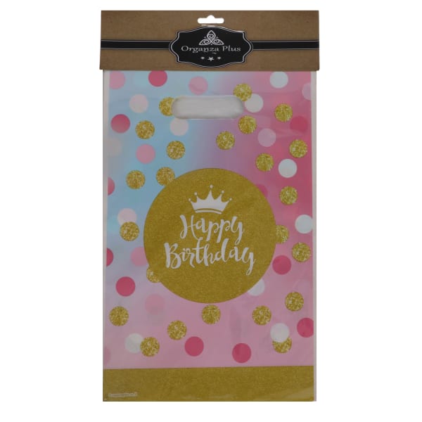 Birthday cellophane bags featuring cheerful balloons and gifts, 25 x 15 cm, 25 pp