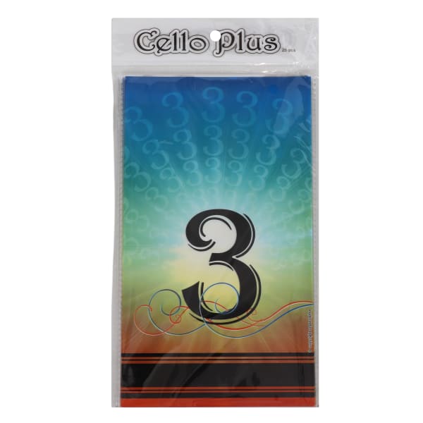 25 Upsherin Colorful "3" Cellophane Bags - 6"x9.5"