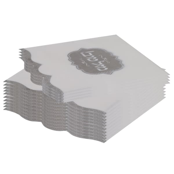 16 Mazel Tov Napkins - Silver with Scalloped Edge