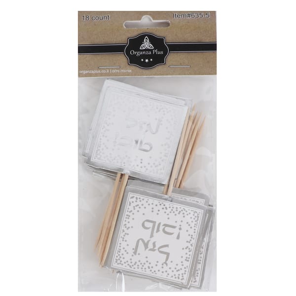 18 Silver Square Mazel Tov Toothpicks for Cake Decarotion