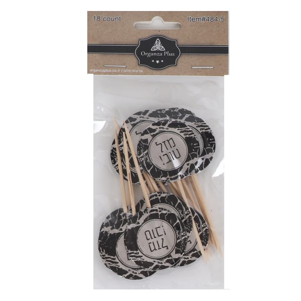 18 Silver Round Mazel Tov Toothpicks for Cake Decarotion