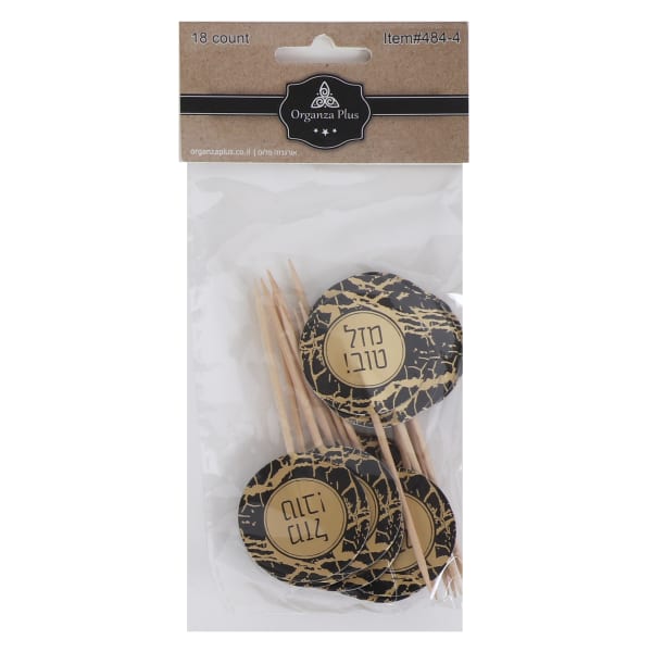 18 Gold Round Mazel Tov Toothpicks for Cake Decarotion
