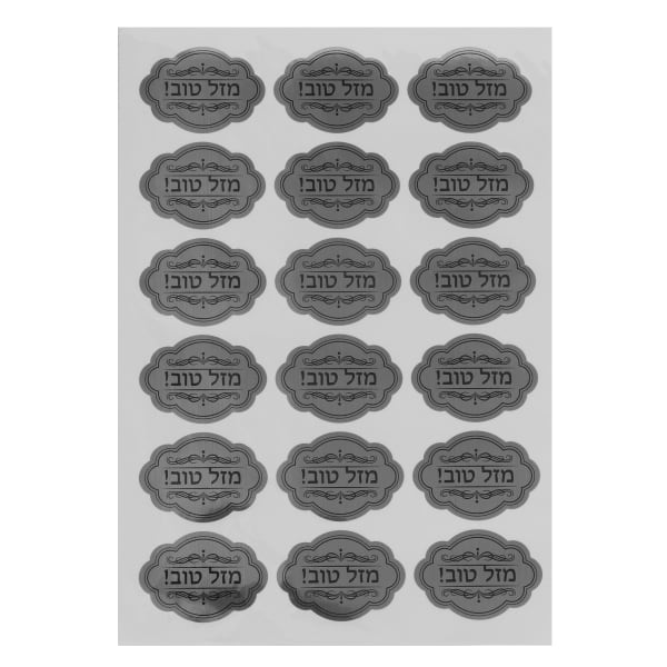 2 Sheets of 18 Silver Metallic Oval Mazel Tov Stickers
