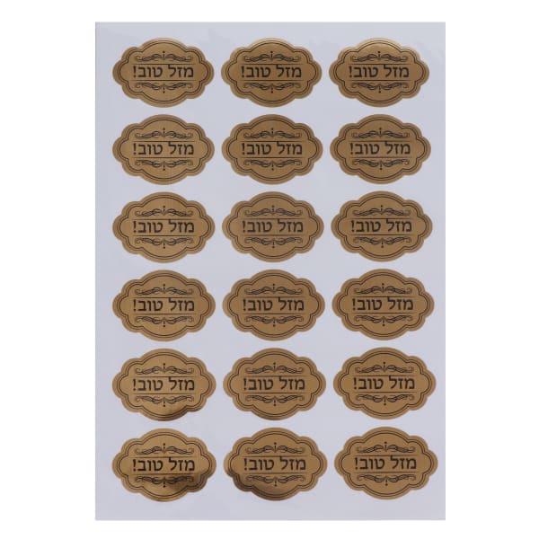 2 Sheets of 18 Gold Metallic Oval Mazel Tov Stickers