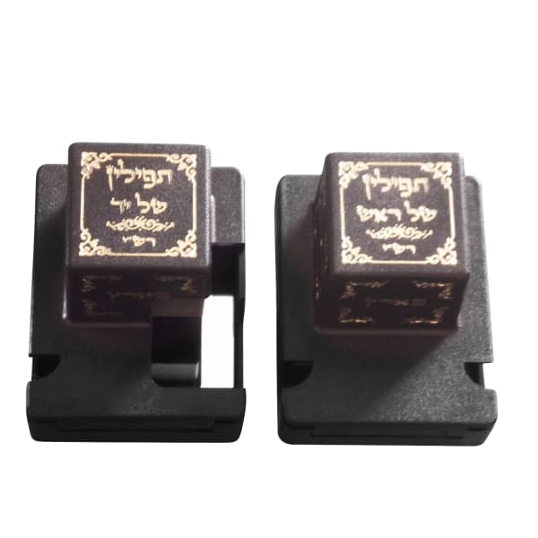 Plastic Tefillin Boxes Case BLACK AND GOLD FOR Rabbeinu Tam set of 2 shel rosh and Shel Yad For Righty being sold in unit of 12 sets 33-34