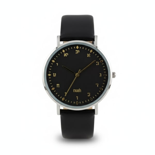 Watch - with GOLD Aleph Bais" Black Handle Black 'n White face Silver rim