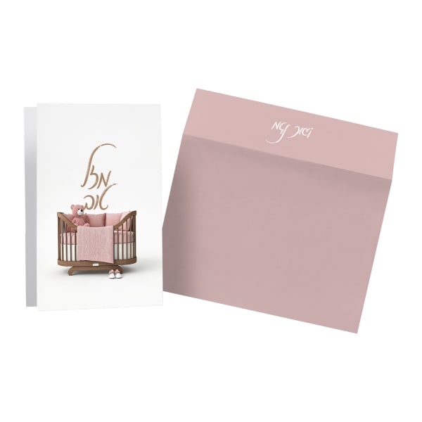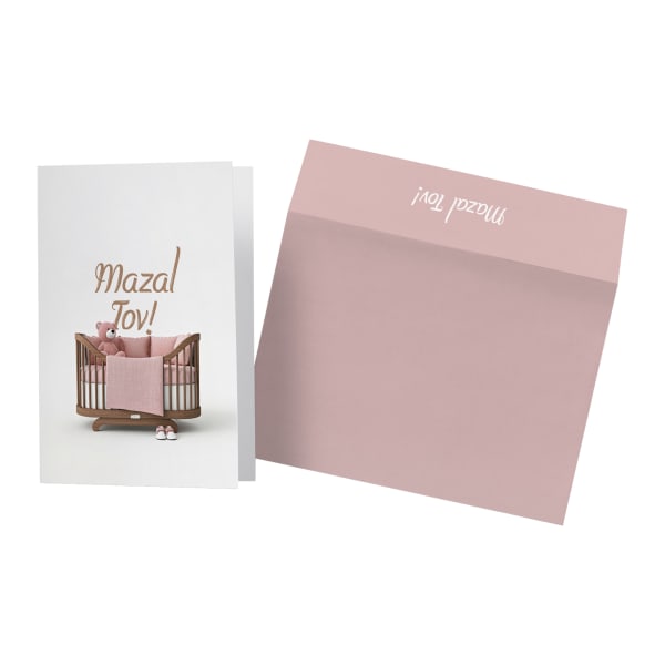 Mazal Tov Pink Baby Crib Card (Hebrew)