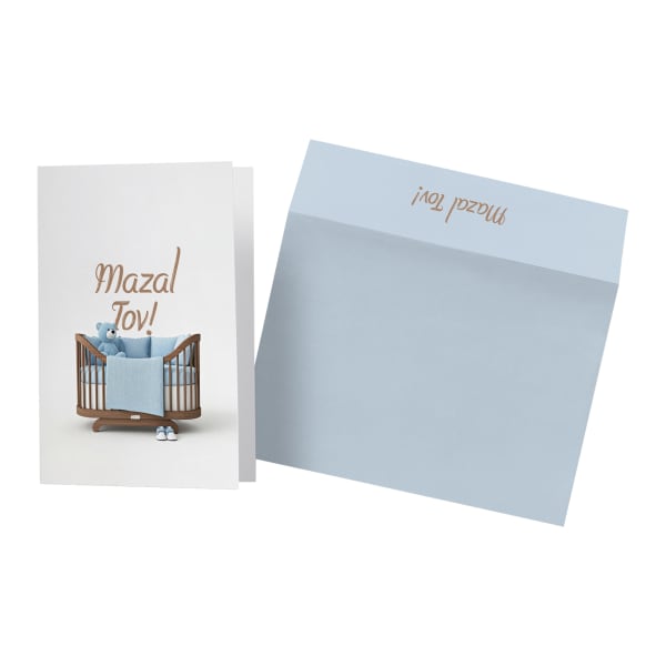 Mazal Tov Blue Baby Crib Card (Hebrew)