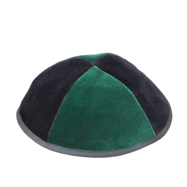 4 Part Gray & Green Yarmulka With Rim Size 3