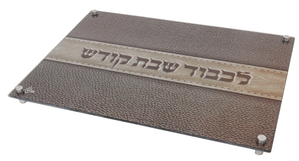 Glass Challah Board gray leather style with Stand Offs 12x16"