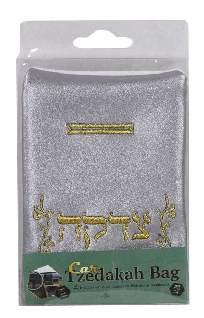 Magnetic Faux Leather Tzedakah Bag stick in car or refrigerator - Silver 3"x5"