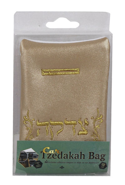 Faux Leather Tzedakah Bag - Gold 3"x5"