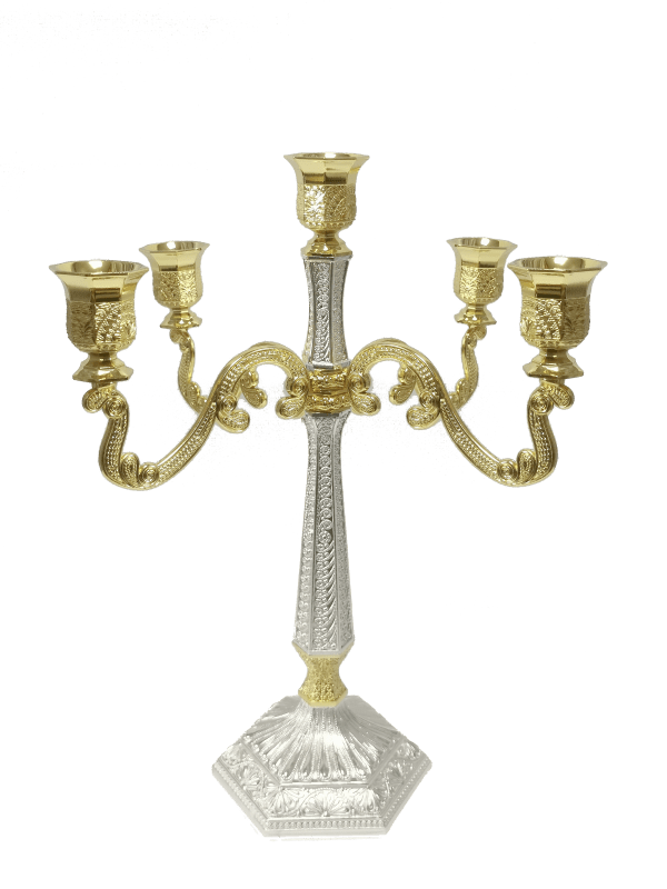 Silver & Gold Filigree Candelabra 5 Light 16"