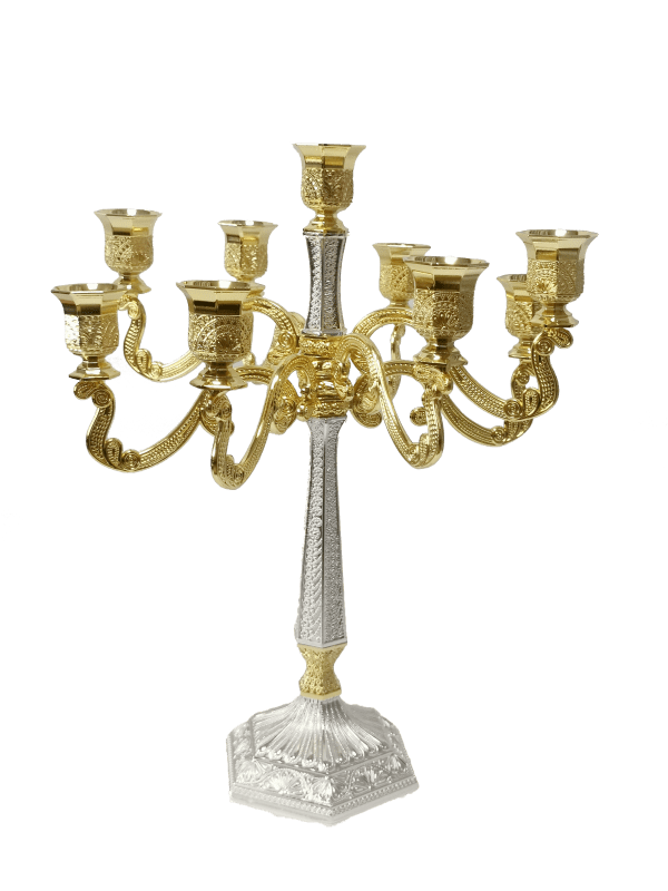 Silver & Gold Filigree Candelabra 9 Light 16"