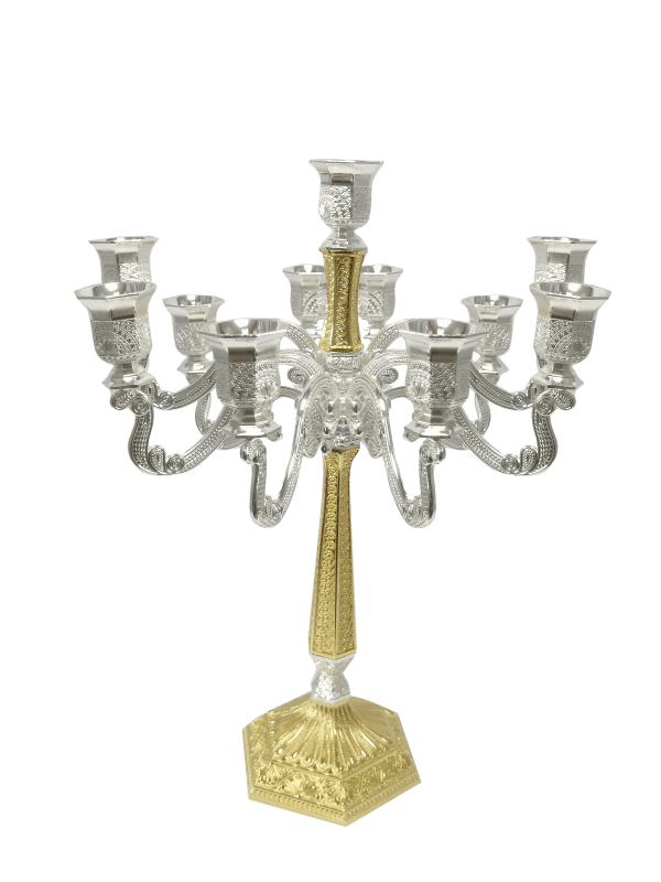 Silver & Gold Filigree Candelabra 11 Light 16"