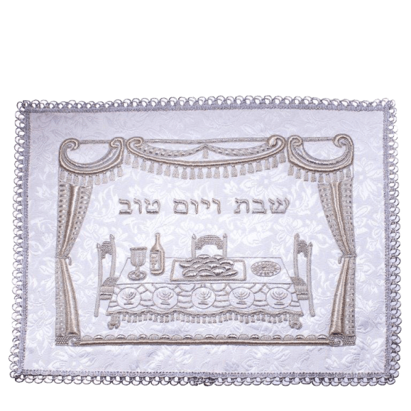 Challah Cover White Silver Curtain 26X22 "
