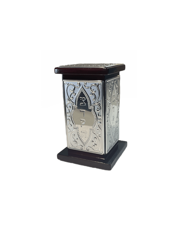 Hadad Silver Wood & Silver Tzedakah Box 3x5.5"