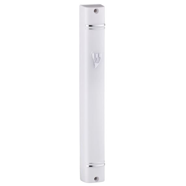Plastic Mezuzah White Back Opening Silver Shin 20 cm
