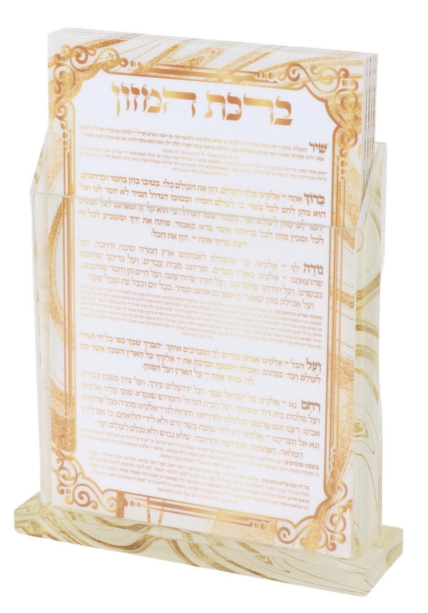 6 White & Gold Acrylic Benchers - 2 Sided - with Matching Acrylic Holder