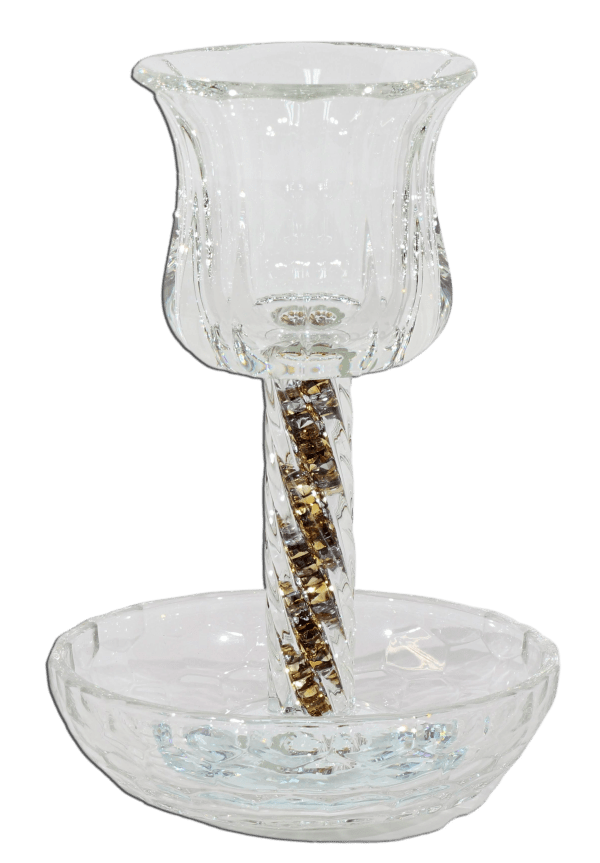 Crystal Kiddush Cup - Gold Filling with Spiral Leg - 6" Cup 4.5" Tray