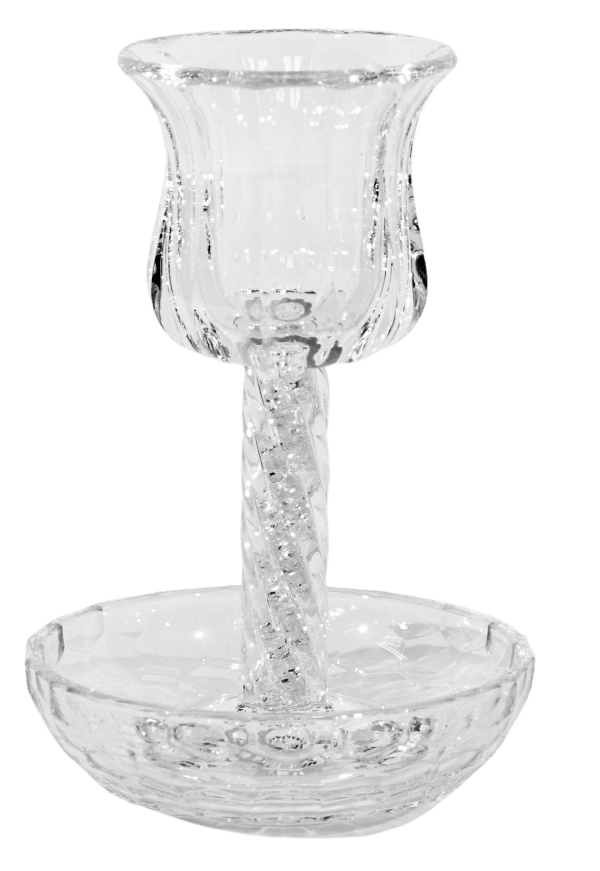 Crystal Kiddush Cup - White Filling with Spiral Leg - 6" Cup 4.5" Tray