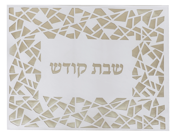 Leather Look G old & White Framed Challah Cover Laser Cut 17.5" x 21.5"