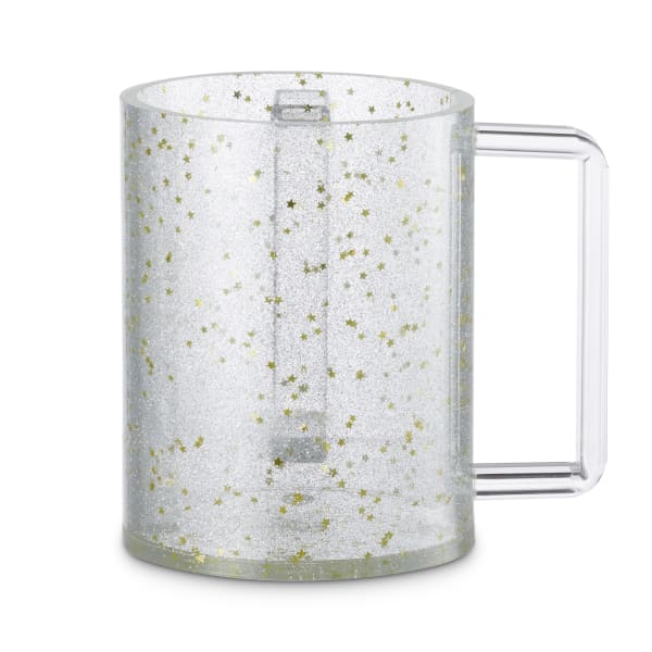 Acrylic Wash cup with Gold Glitter and Stars - Clear Handles
