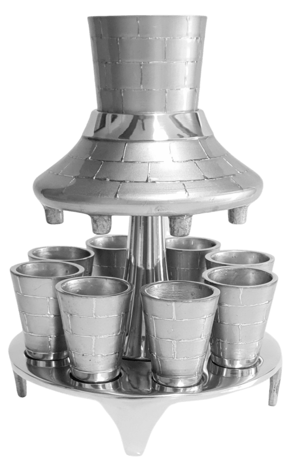 Aluminum Fountain Set 8 Cups Silver Brick Design
