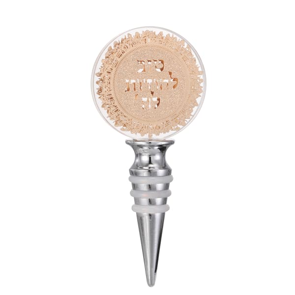 Crystal Wine Bottle Cork "Tov Lehoides L'Hashem" Gold Plates