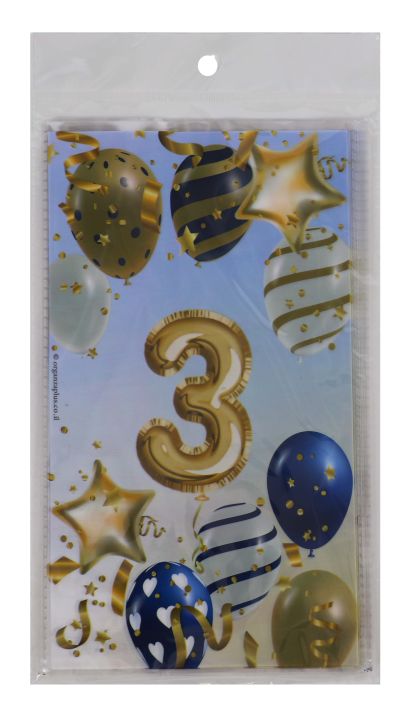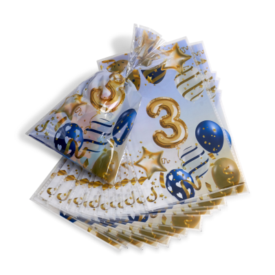20 Upsherin Cellophane Bags with "3" balloons - 6"x12"