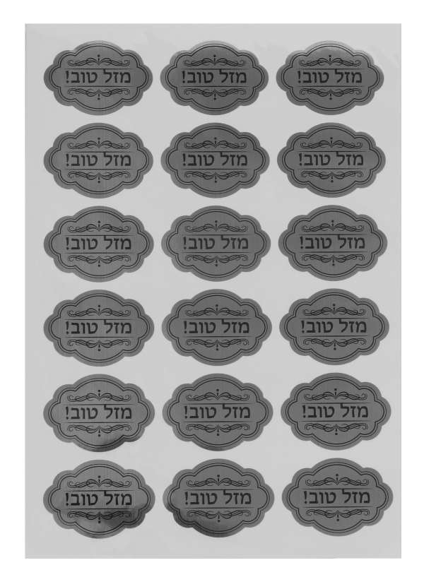 2 Sheets of 18 Silver Metallic Oval Mazel Tov Stickers
