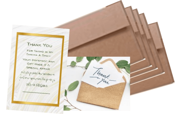 5 Kallah/Tenoyim Thank You Cards & Envelopes 4"x6"