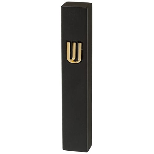 Concrete polymer Mezuzah Cover 15 cm, Stone - Like, Black Color Gold Shin
