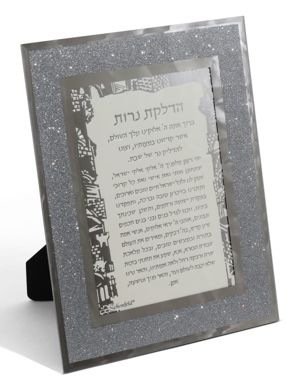 Crystal Hadlakas Neiros Blessing Jerusalem Design Gold - Hanging 5"x7"