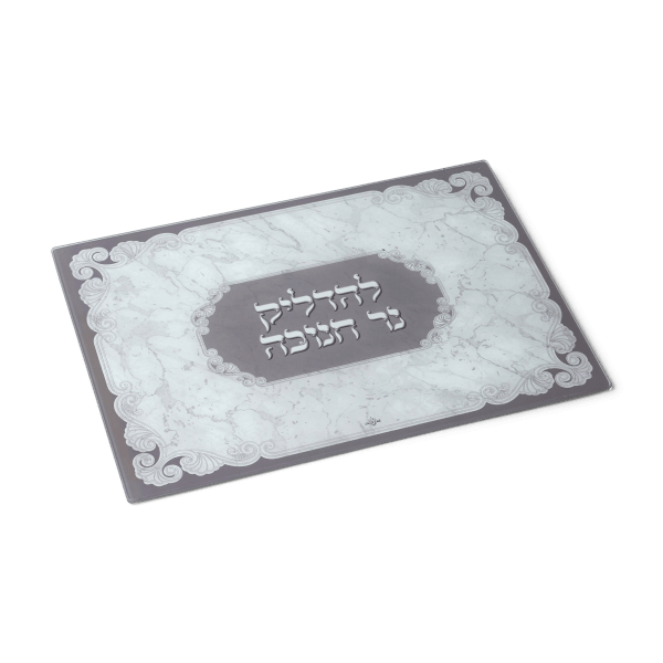 Chanukah Menorah Tray Tempered Glass -Classy Silver Design 13.5 x 9.5"