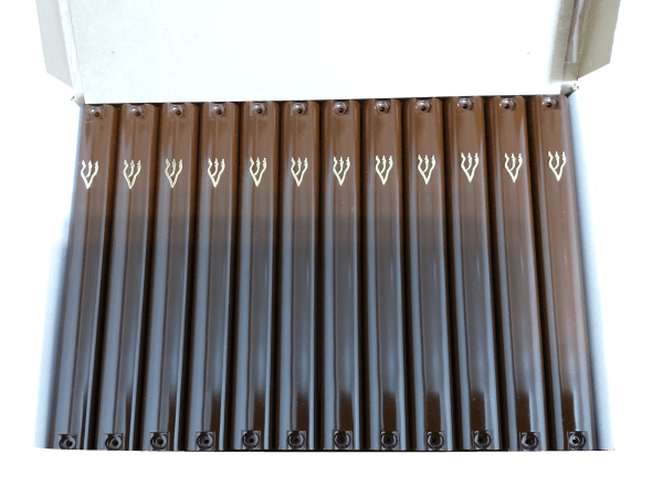 Case Of 24 Brown Plastic Mezuzah Covers-Gold 'Shin 12 Cm