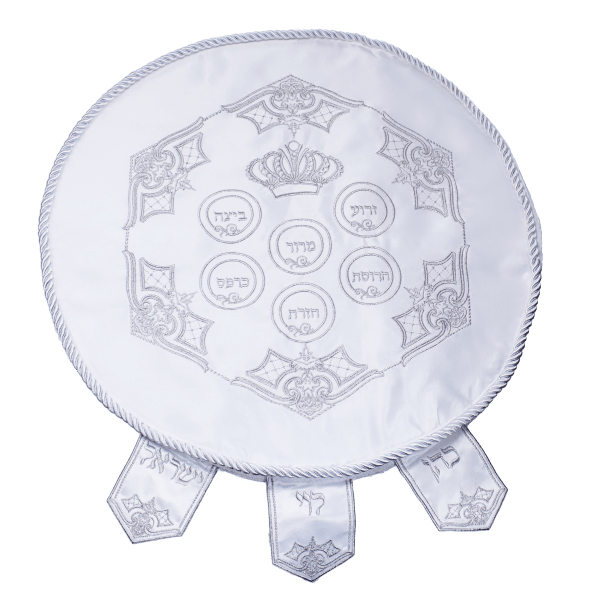 Matzah Cover White Satin 3 Pockets With Hard Plastic 18"