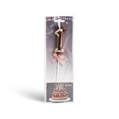 Number 1 on a stick with a rose gold crown