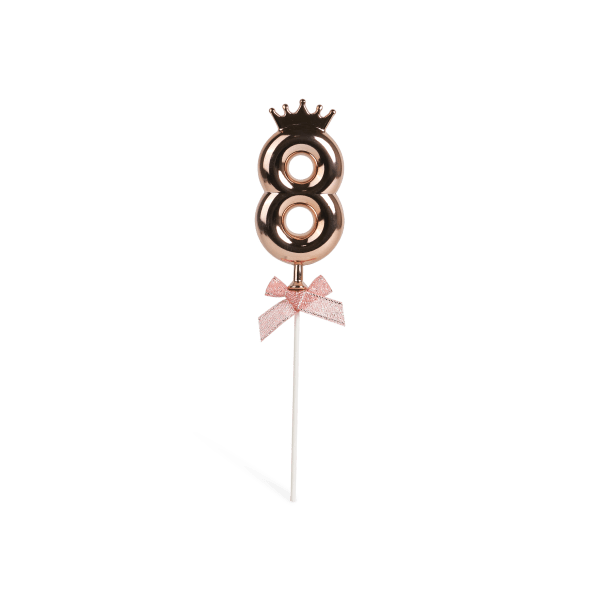 Number 8 on a stick with a rose gold crown