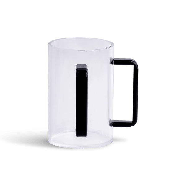 Tall Acrylic wash cup  Silver with black handles 6 inch tall