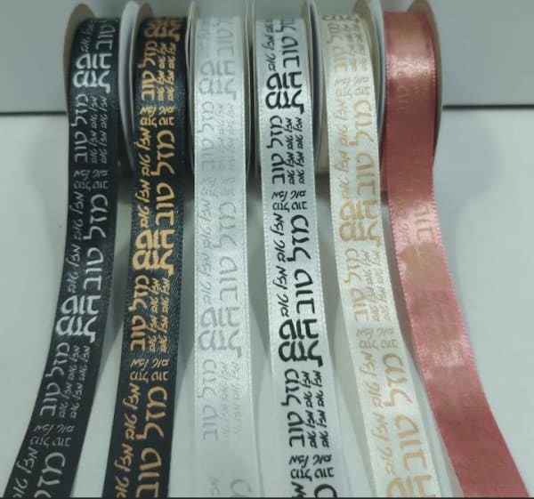 Antique Pink Mazel Tov Satin Ribbon Gold Title 1.5 cm 10