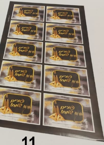 Colorful happy Purim stickers Brushed Black & Gold - 2 sheets