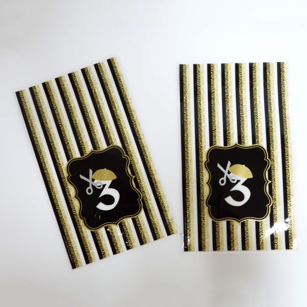 Black & Gold striped cellophane bag number 3 with Kippah and scissors