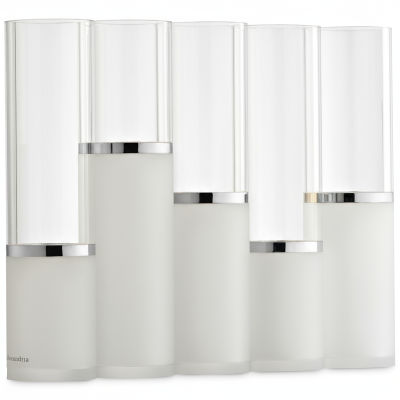 It features a frosted lower half, clear top, and Silver accent rings, making it a sleek and stylish addition to any space