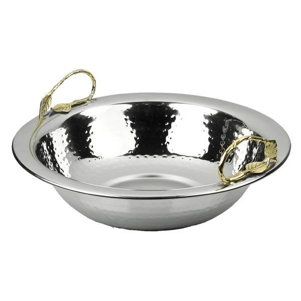 Stainless Steel Hammered Bowl With Bronze handles 14"