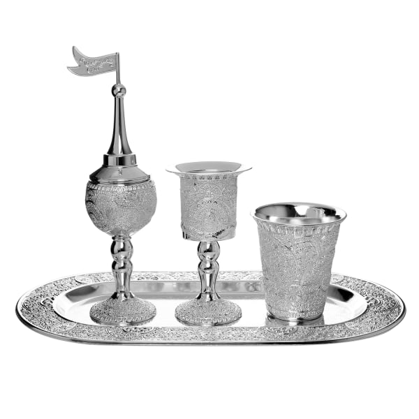 Havdalah Set of 4 Oval Tray Filigree Design Silver Plated