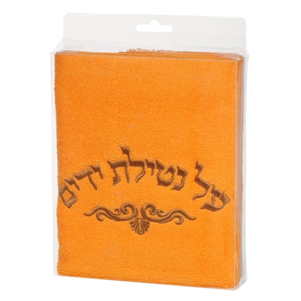 Orange Towel With Gold Al Netilat Yadayim 28x17" `