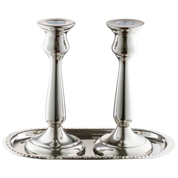 Candle Stick Set Of 2 With tray 6" Aluminum With Velvet Box