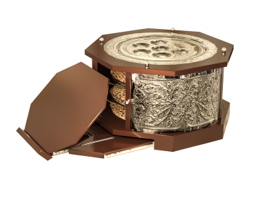 The "Magid Kaarah" 3 tier- mahogany silver /plated Kaarah with retractable Shtender 16x16x9" Limited Edition