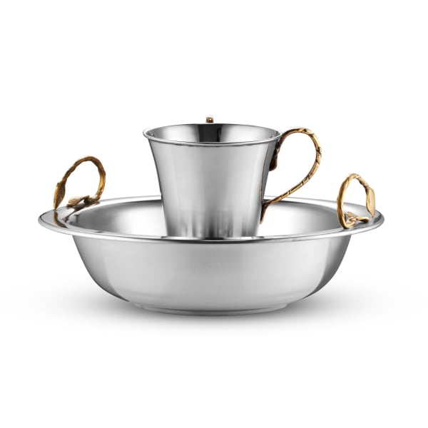 Washing Cup and Bowl Set Brass Leaf Handle Stainless Steel